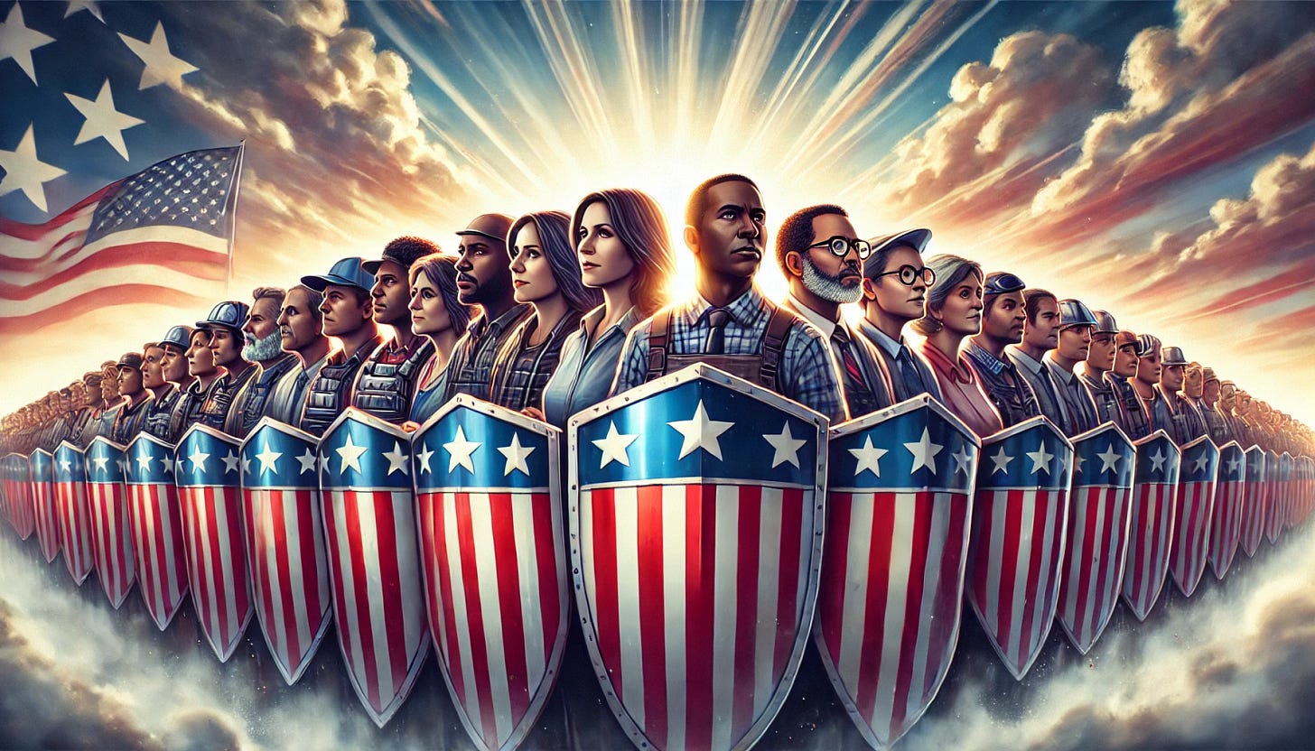 There was once a scrappy set of colonies that fought for their freedoms, standing against tyranny to establish a democracy for the people, by the people. Now it's our turn to carry forward that warrior mantle and defend what they created. This is a fight for the soul of democracy, and half-measures won't cut it. Let's be clear: this is a call to action, not a call to violence. The path forward demands courage, unity, and determination, but it must remain grounded in law, principles, and the very democracy we seek to protect. It's about showing up, doing the hard work of democracy, and refusing to quit, no matter how hard it gets.